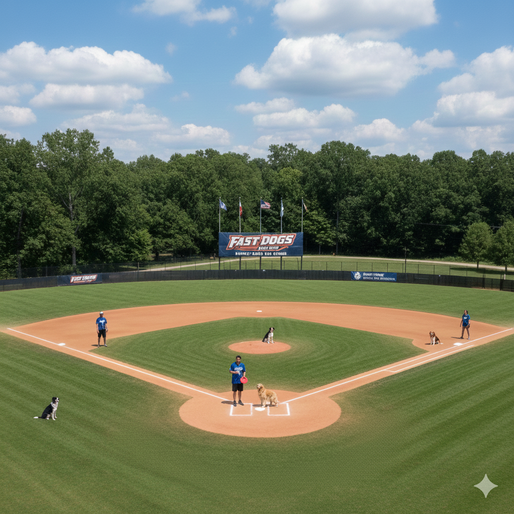 Introducing Fast-Dogs Frisbee Base Ball (FDBB)—a unique, high-energy team sport that combines the familiar rules of America's favorite pastime with the joy of canine fetch and speed! This game is the perfect way to build teamwork, bond with your dog, and join a fun, supportive league community.